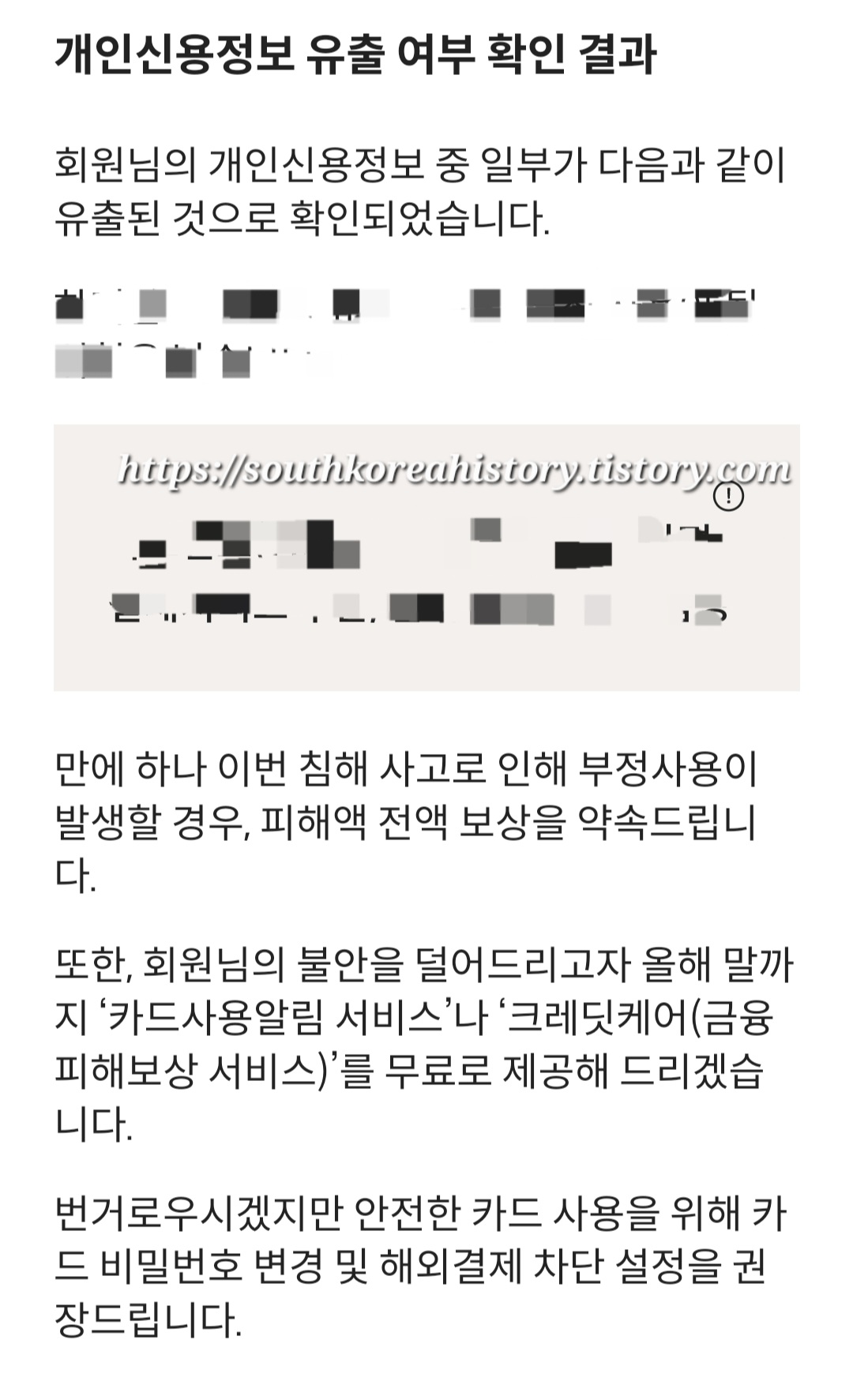 카드번호·CVC까지 유출된 일부 고객(약 28만 명)은 반드시 카드 재발급을 권장합니다.